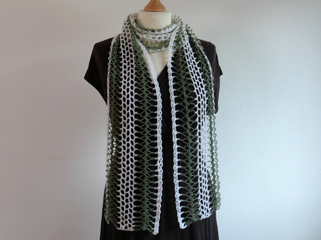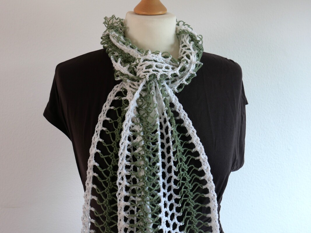 Durch die luftige Machart trägt sich der Schal angenehm leicht und eignet sich perfekt für Frühling und Sommer oder als dezentes Accessoire für kühlere Abende. Je nach Garnwahl kannst du deinen ganz persönlichen Look kreieren – von natürlich schlicht bis hin zu farbenfroh und verspielt.