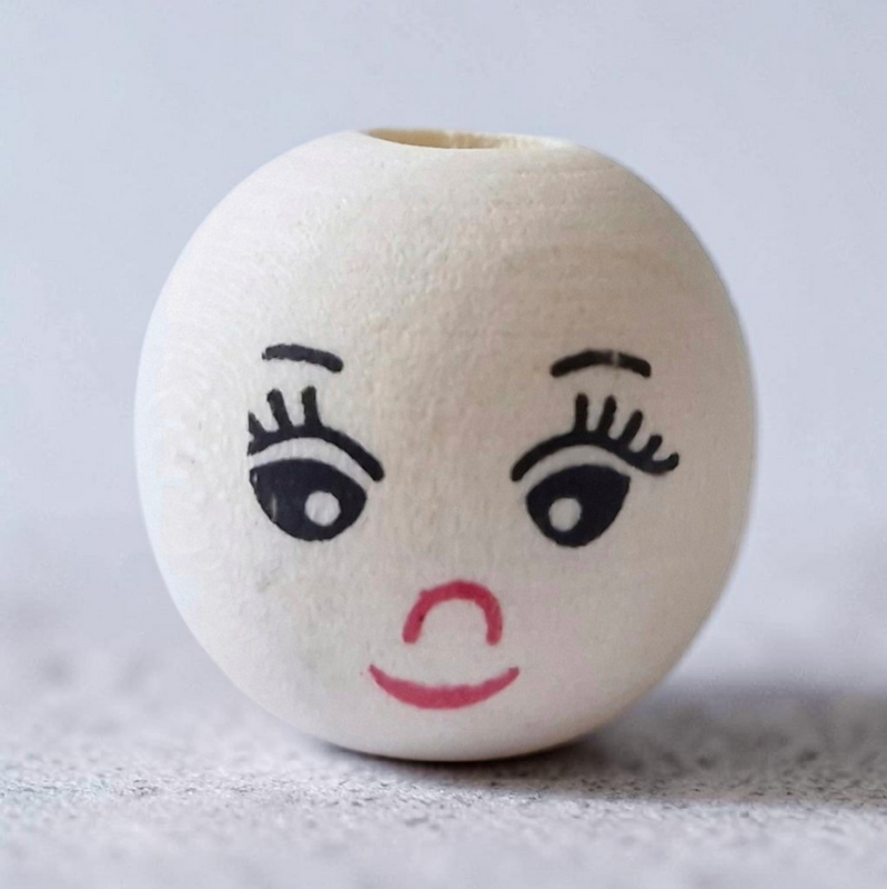 • Holzperle 6 cm Umfang mit Gesicht (Amazon, Tedi)