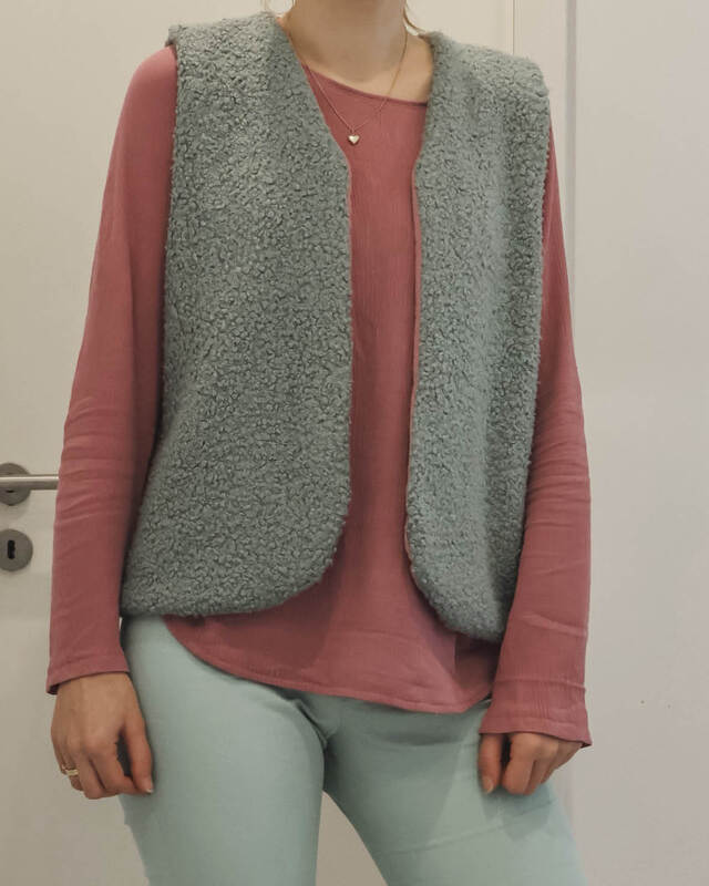 Für die Weste eignen sich alle kuscheligen Stoffe mit etwas Stand, die dem Schnitt seine schöne Form verleihen. Besonders gut passen Teddyfleece, Kunstfell, Alpenfleece, Fleece, Bouclé oder Steppstoffe. Auch andere voluminösere Materialien sind möglich, solange genügend Stabilität mitbringen. Je nach Stoffwahl wirkt YLVA sportlich, lässig oder besonders edel.