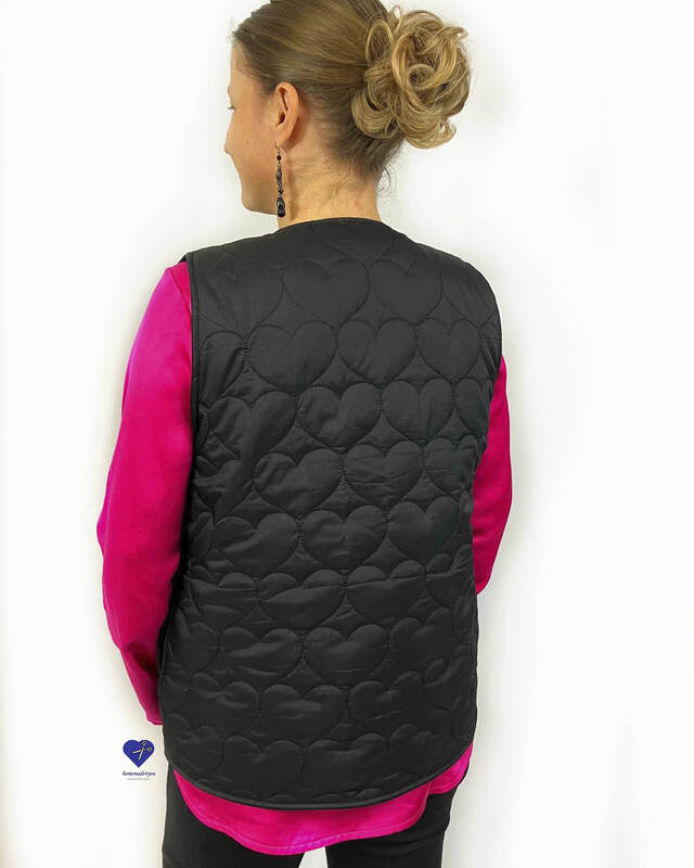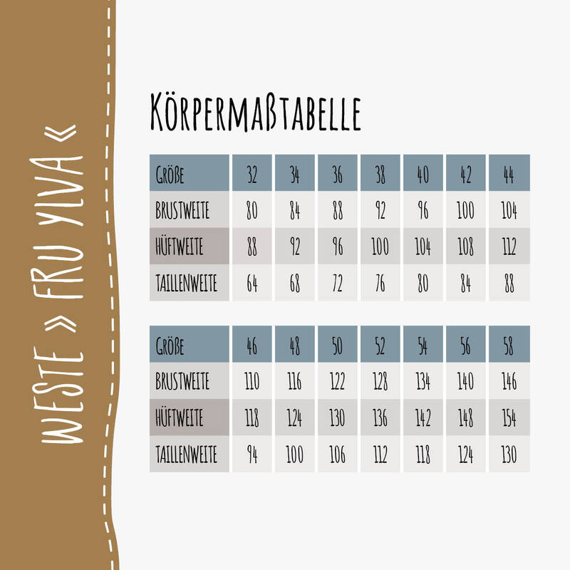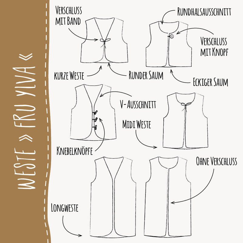Die Weste kann ohne Verschluss genäht werden oder wahlweise mit Knöpfen, Knebelknöpfen oder Bindebändern – so entsteht je nach Stoff und Variante immer wieder ein neues Lieblingsstück.