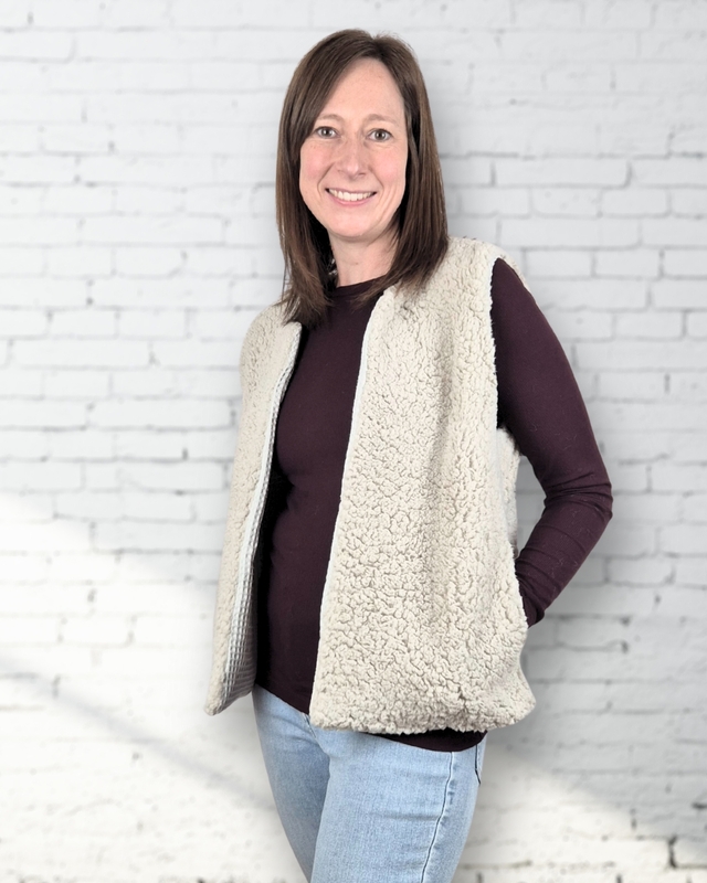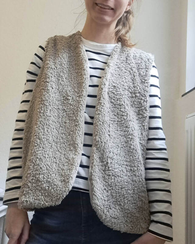 FRU YLVA vereint gemütliches Wohlfühldesign mit alltagstauglicher Vielseitigkeit. Genäht aus kuscheligen Stoffen wie Teddyfleece oder Kunstfell hält sie angenehm warm, ohne einzuengen, und lässt sich wunderbar über Shirt, Longsleeve oder Kleid tragen.