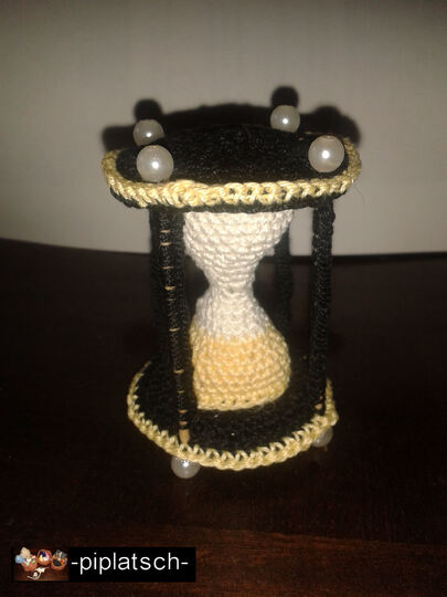 Die kleine Sanduhr ist im Inneren mit Reis gefüllt und erzeugt so ein kleines Geräusch.