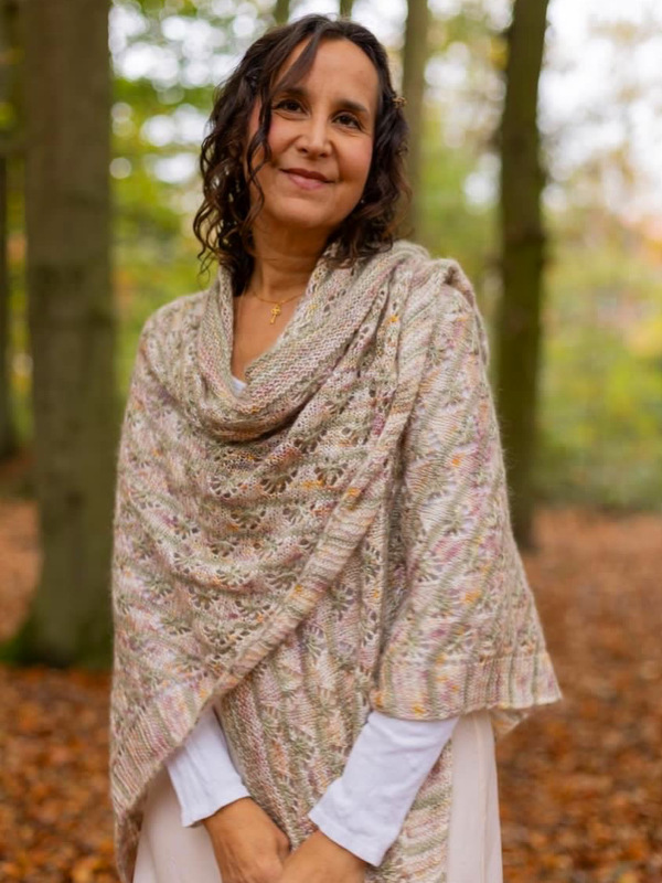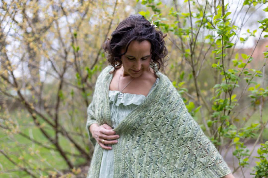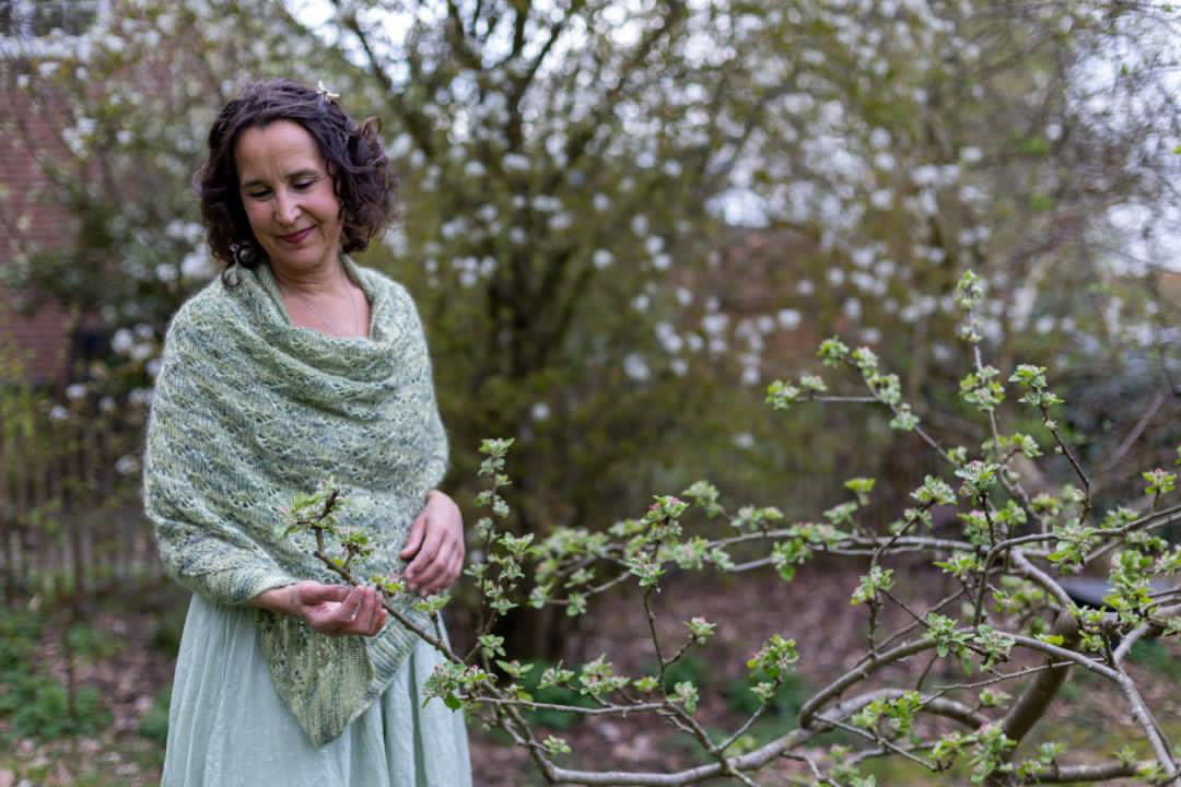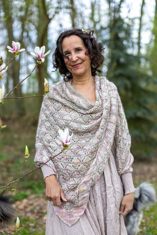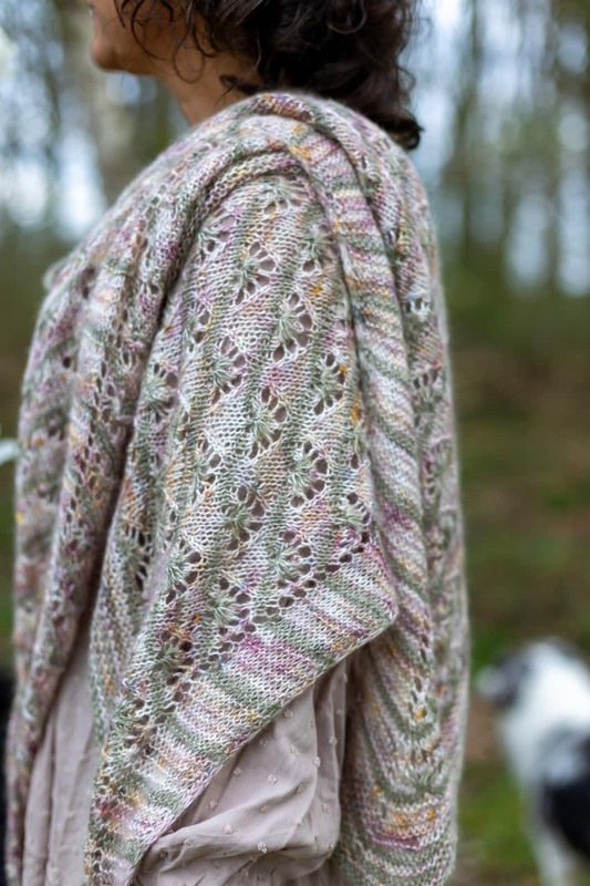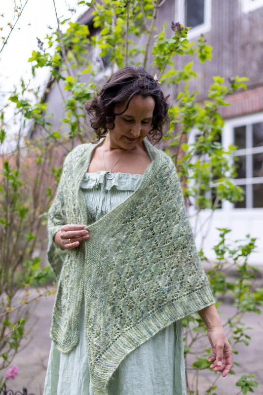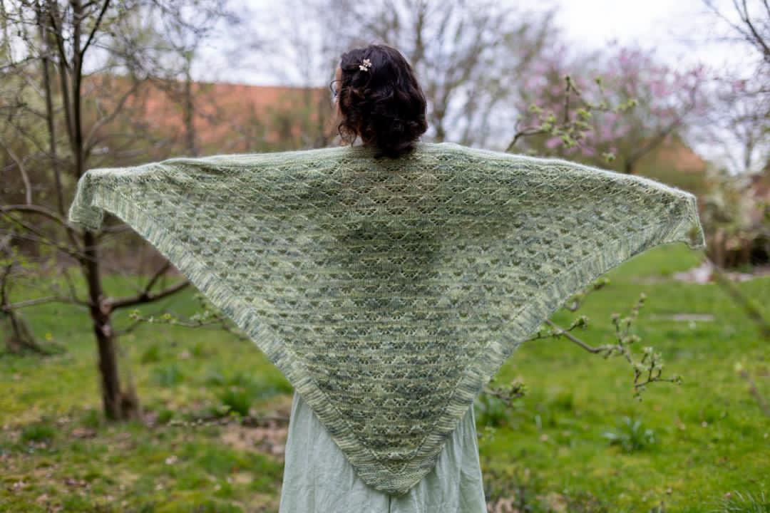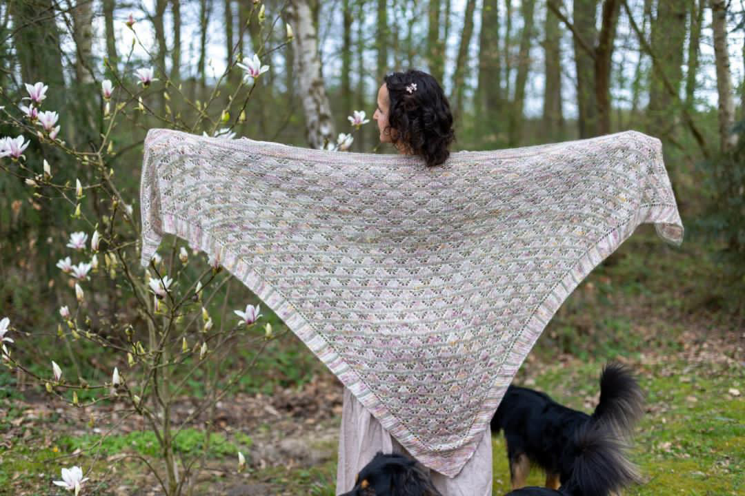 Das Verblümt Tuch wird von der unteren Spitze aus gestrickt. Mittels der einprägsamen Zunahmen kann das Tuch so groß gestrickt werden, wie die Wolle reicht.