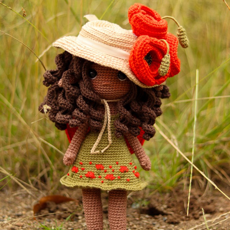Mit dieser detaillierten Häkelanleitung kannst du Mona Mohn, eine bezaubernde Blumenfee, ganz einfach selbst häkeln.