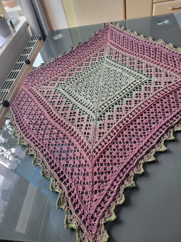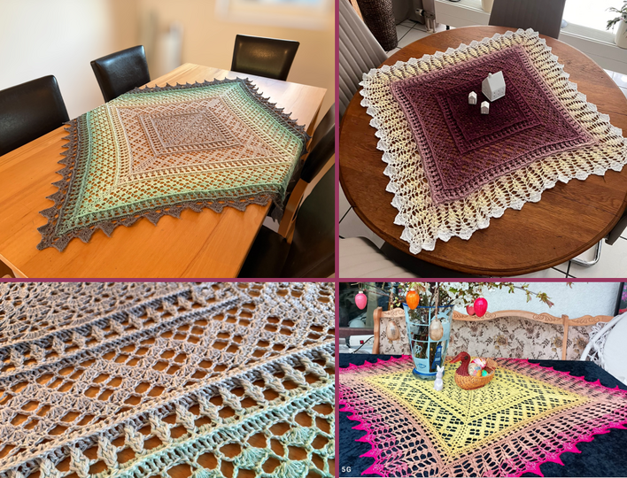 Eudora ist eine zauberhafte Mitteldecke, die durch einen wunderschönen Mustermix besticht. Die Decke kann in 3 verschiedenen Größen gehäkelt werden, sodass sie leicht an jede Tischgröße angepasst werden kann. Ideal auch für melierte Wolle!