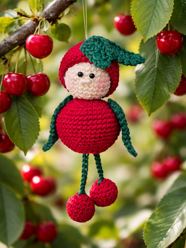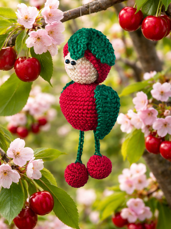 Der Körper ist doppelwandig gehäkelt - so behält der Körper besser die typische runde Kirschenform und ist stabil.