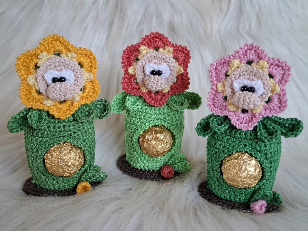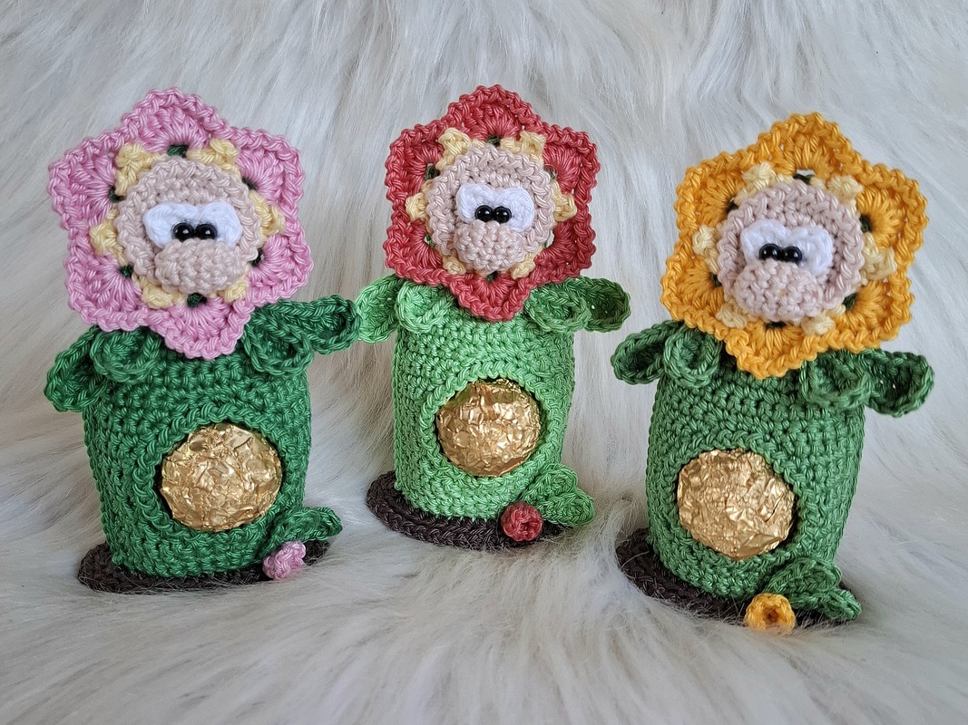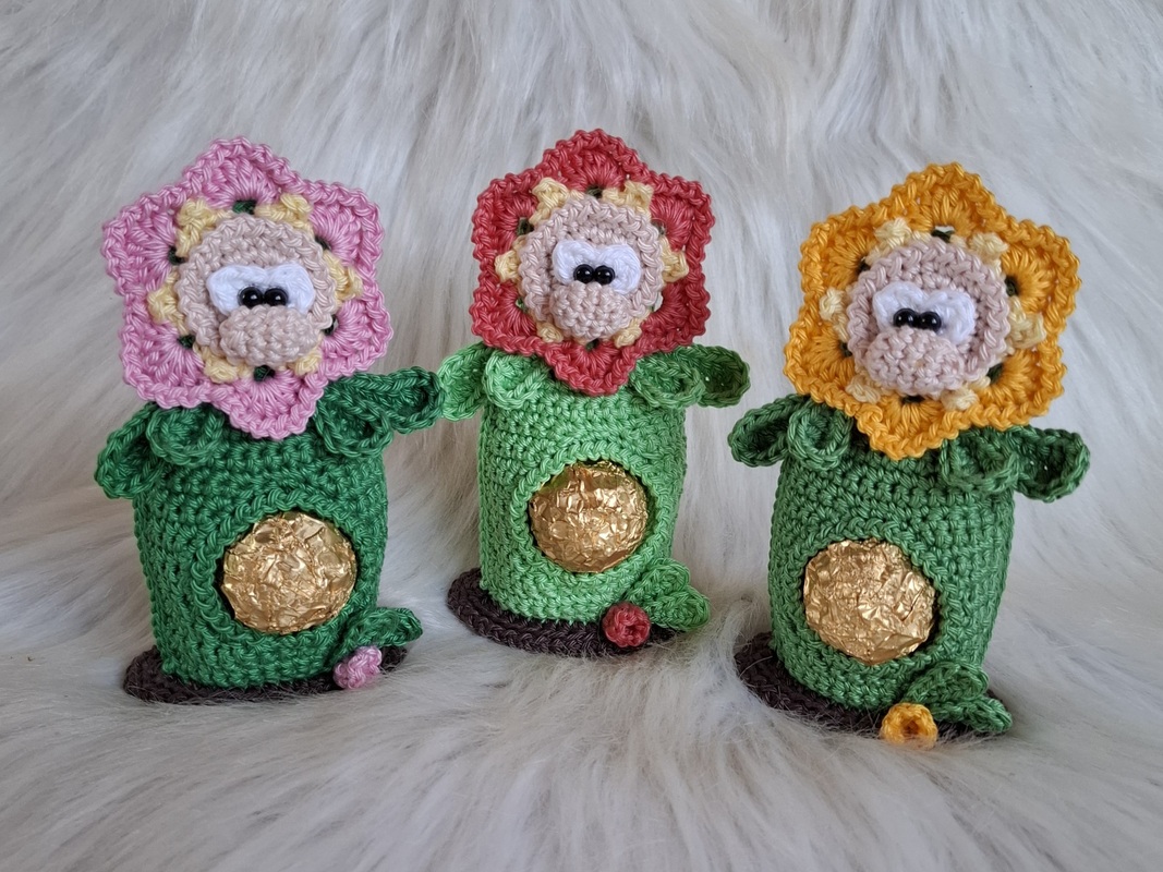 Baumwolle 50gr / 125 m ( Catania oder Catona ) , du brauchst 20gr in grün , 5gr in Braun , Reste in hellgelb , Wunschfarbe für die Blüten , weiß und hautfarbe.