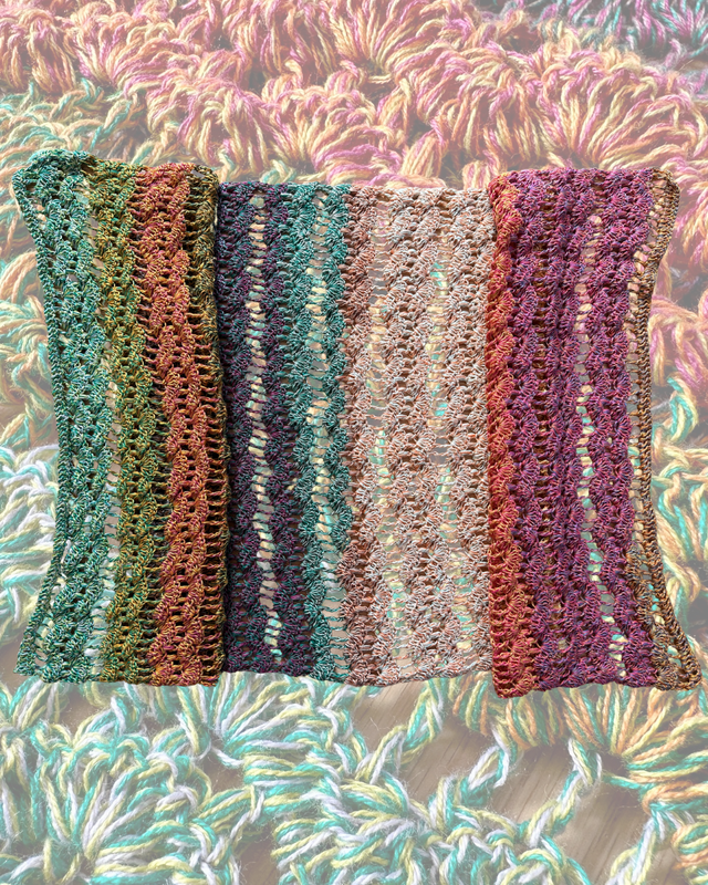 Die Stola kann in jeder beliebigen Länge gearbeitet werden. Die Breite beträgt ca. 0,50m.