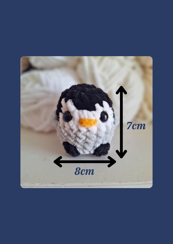 Ihr erhaltet drei kompakte, digitale PDF‑Anleitung für ein Mini Küken, eine Mini Ente und einen Mini Pinguin. Die Tiere sind ca. 7cm hoch und 8cm breit. Die Anleitungen enthalten sowohl eine ausführliche Schritt‑für‑Schritt‑Version mit vielen Detailfotos sowie eine kompakte Version für erfahrene Häkler:innen, die den Ablauf schnell überblicken wollen. Die Vogelküken lassen sich in etwa 20-25 Minuten fertigstellen.