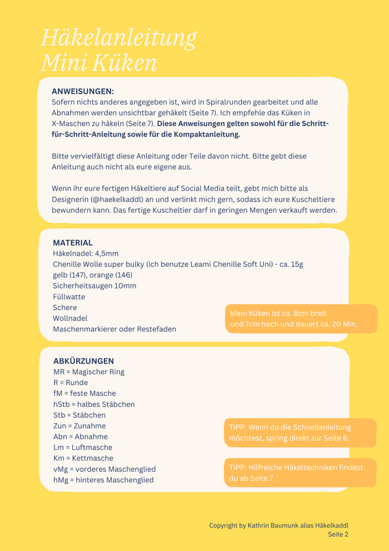 Die Anleitungen dürfen nicht weiterverbreitet oder kommerziell vervielfältigt werden. Selbstgefertigte Küken dürft ihr in kleinen Stückzahlen unter Angabe meines Namens (@Häkelkaddl) verkaufen.
