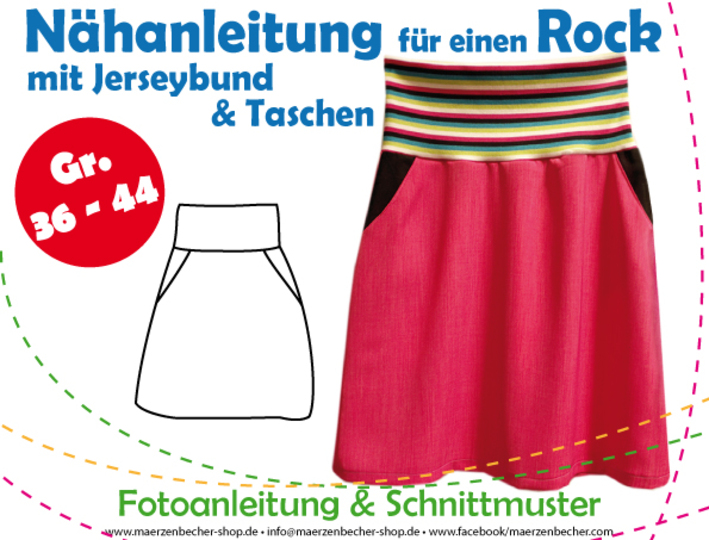 Eine reich bebilderte Foto-Nähanleitung für einen bequemen Rrock mit Jerseybund & Taschen.