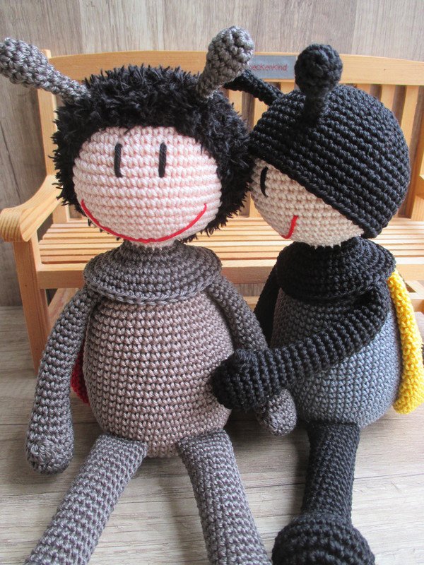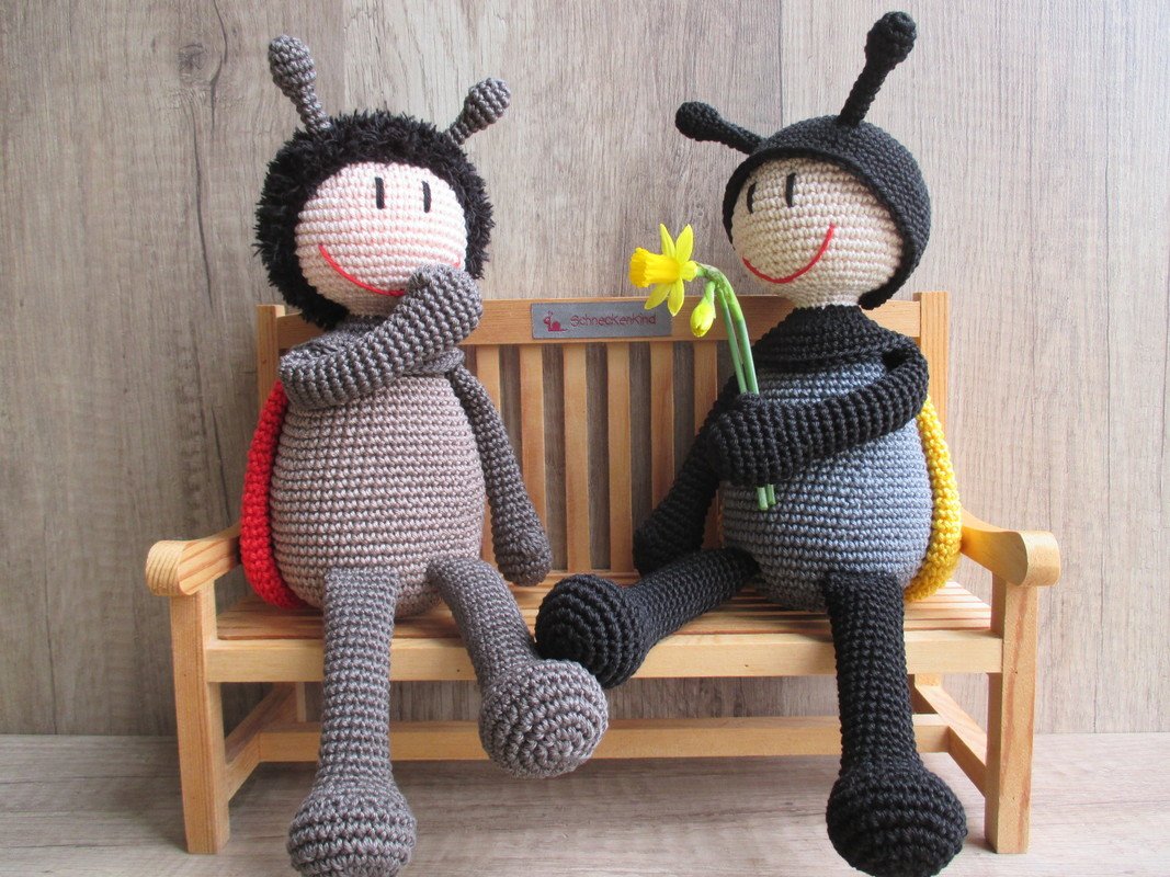 Ausführliche und gut bebilderte Häkelanleitung für die süße Marie Käfer (und ihren Freund Mattis).