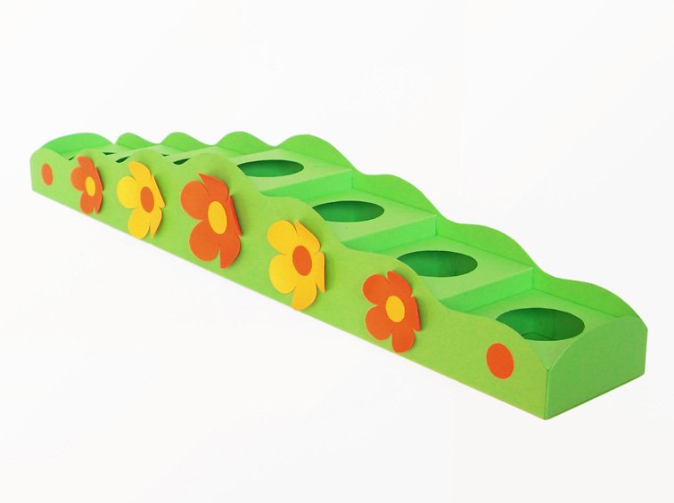 Du kannst den Eierhalter entweder mit Kunststoffeiern bestücken und als Deko verwenden oder auch als praktischer Eierhalter für das Osterfrühstück nutzen.