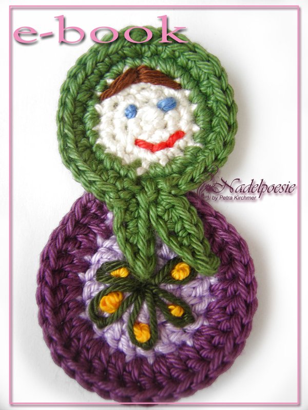 Leicht nachzuarbeitende Häkelanleitung für eine gehäkeltes Matroschka Applikation.
