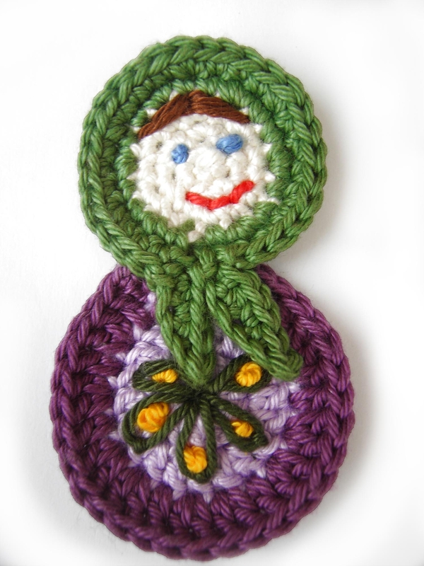 Leicht nachzuarbeitende Häkelanleitung für eine gehäkeltes Matroschka Applikation.
