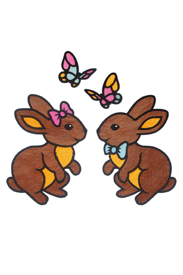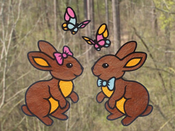 Das Bild in der vorgeschlagenen Anordnung ist ca. 57 x 51 cm groß, jedes Häschen ist etwa 37 cm hoch.