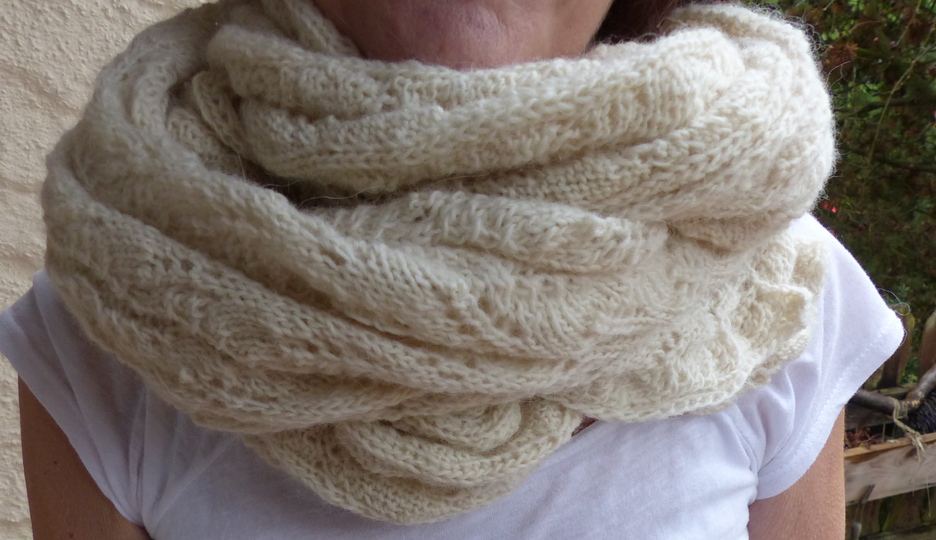 Ich habe aus einem Weichen, leichten Garn mit 50 % Alpaka gestrickt (z. B. Schachenmayr „Highland Alpaca Fino“, 50 % Alpaka, 50 % Schurwolle, mit einer Lauflänge von 250 m / 50 g)