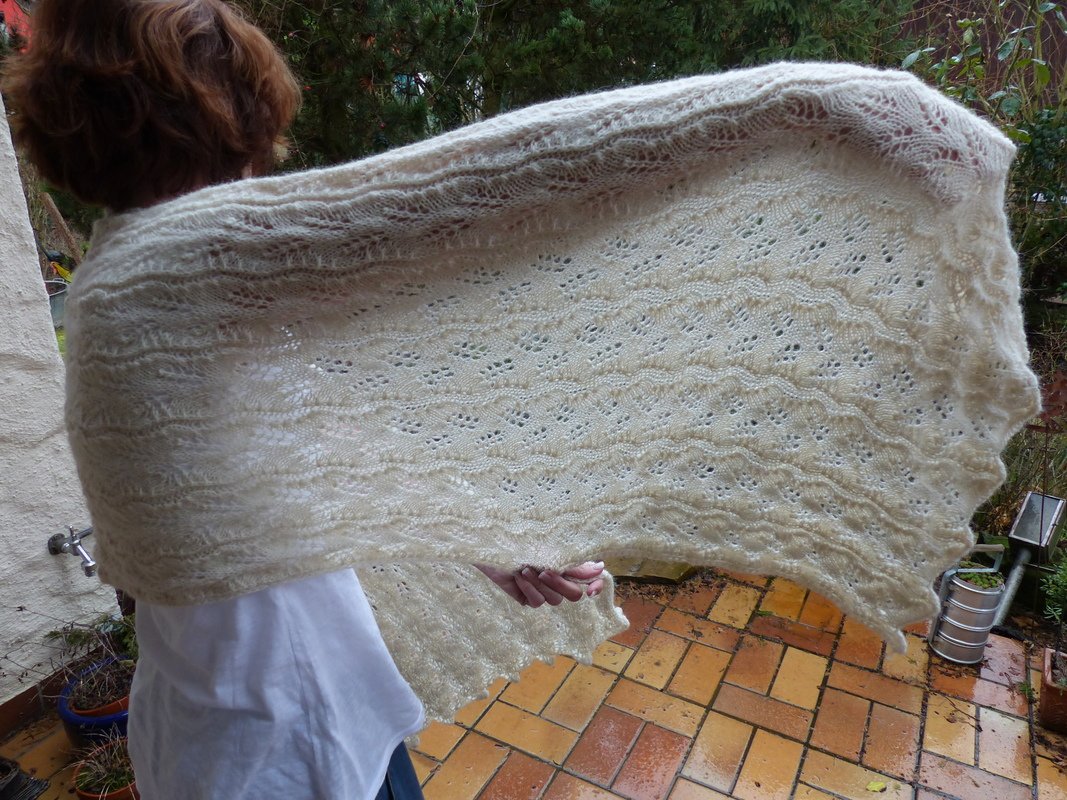 Mein Tuch hatte mit 7 Mustersätzen eine Größe von 43 x 165 cm.