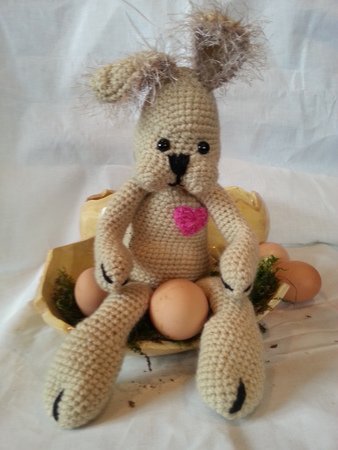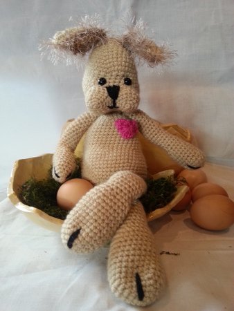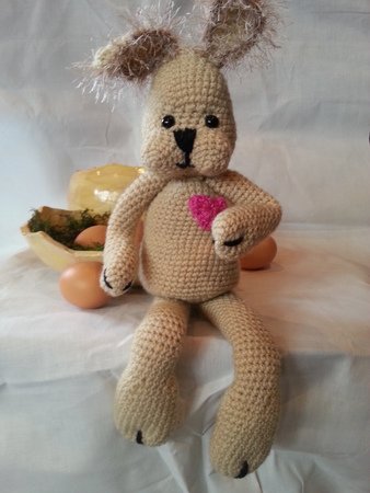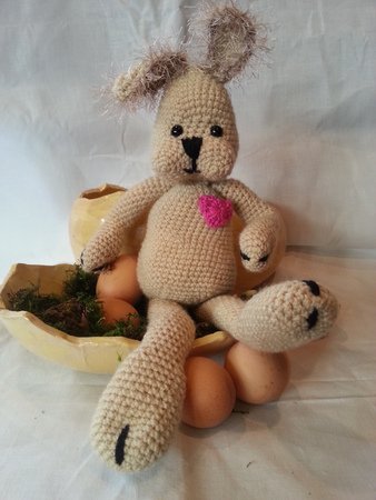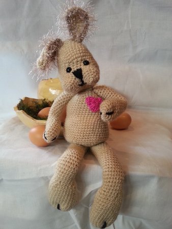 Die Häkelanleitung beinhaltet die Anleitung für den Hasen , Schritt für Schritt mit Bildern.