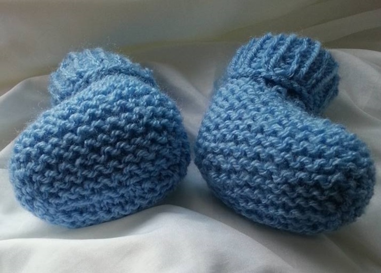 Eine Strickanleitung für Babyschuhe als Datei mit Bildern
