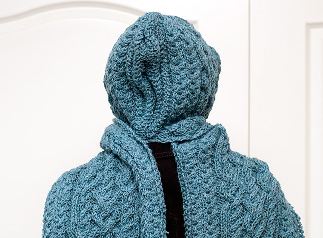Strickanleitung für einen wunderbar warmen Kapuzenschal mit Zopfmustern. Materialverbrauch: ca. 700 m dickes Garn für Nadelstärke 6 - 7. Alle Angaben für den Kapuzenschal beruhen auf einer Endgröße von 198 x 28 cm - eine Anpassung der Größe ist jedoch einfach möglich.