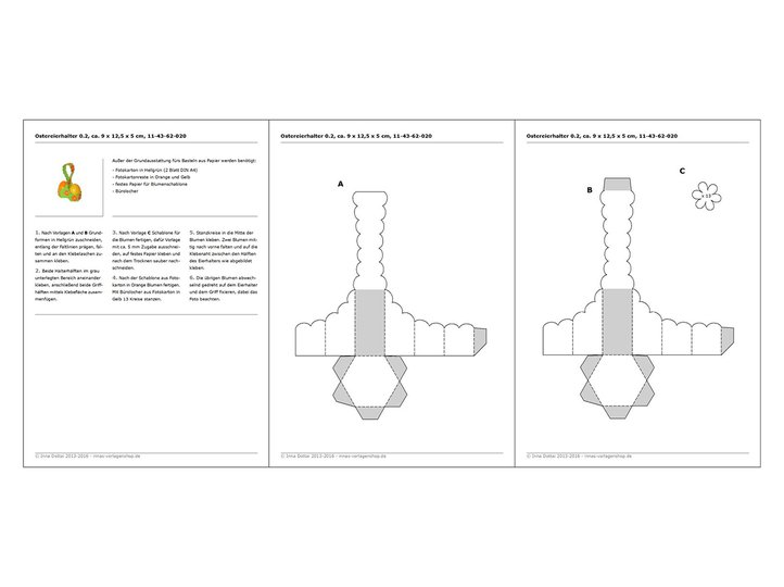 Diese Bastelvorlagen dürfen nur privat genutzt und weder kopiert noch gegen andere Vorlagen getauscht werden. Verkauf der Vorlagen, der enthaltenen Texte und Bilder sowie die Nutzung der Vorlagen und deren Bestandteile für gewerbliche Zwecke ist untersagt.