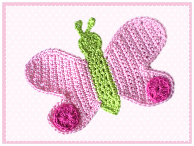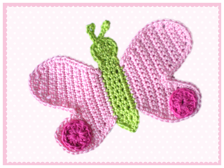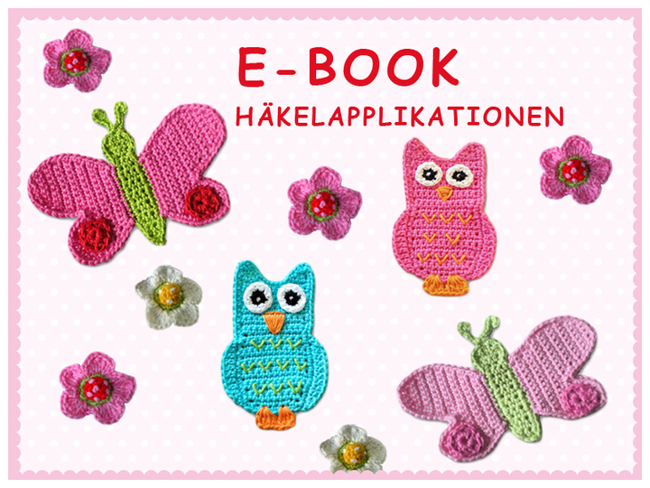 Eine ausführliche Häkelanleitung für einen Schmetterling, einer Eule und einem 3D-Blümchen.