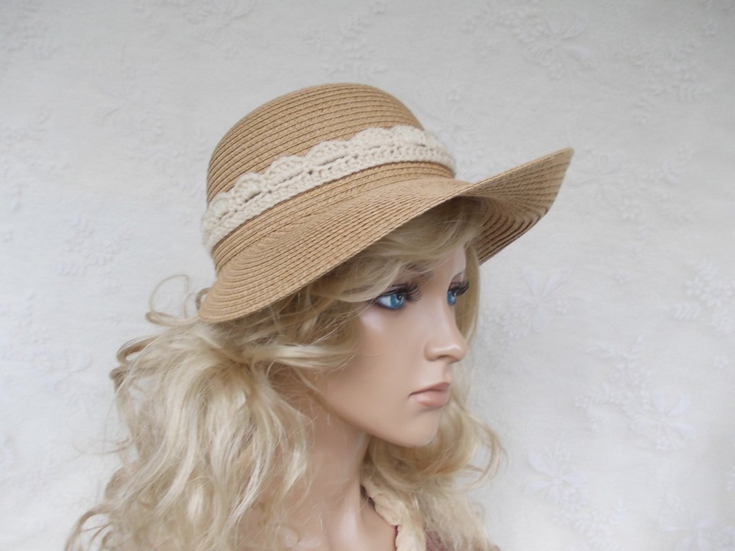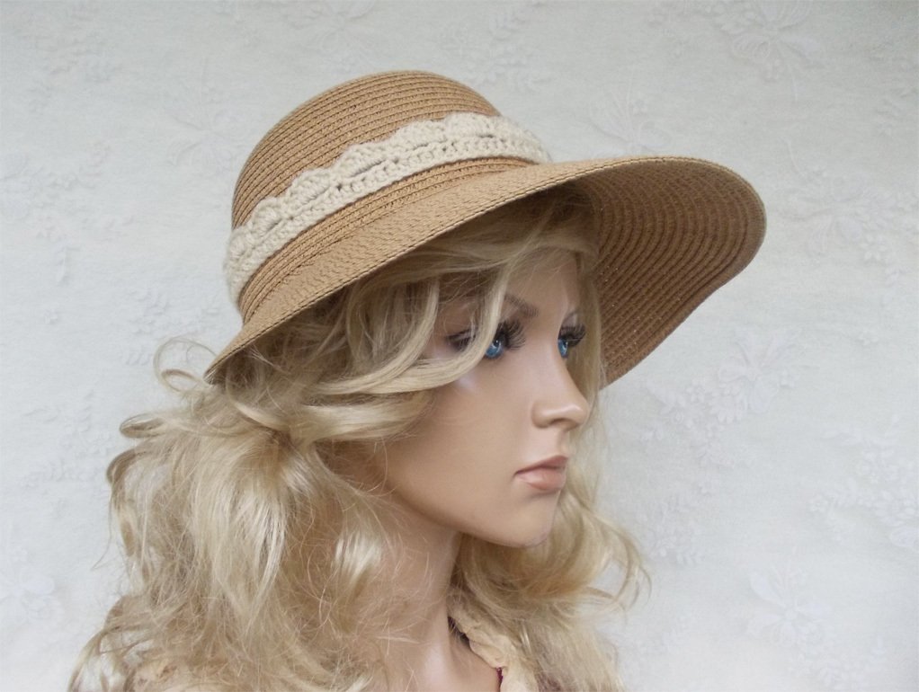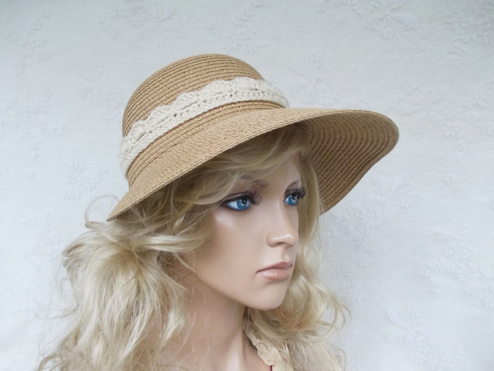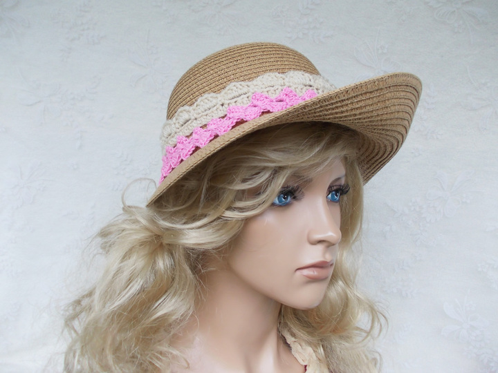 Es gibt 2 Anleitungen (2 pdf-Dateien) für die auf den Bildern zu sehenden Häkelborten, welche nicht nur für Hüte verwendet werden können, die Verzierung der Hüte ist nur ein Beispiel. Arbeitsbilder befinden sich in den Anleitungen, gleichfalls auch ein paar Tipps zur Anwendung.