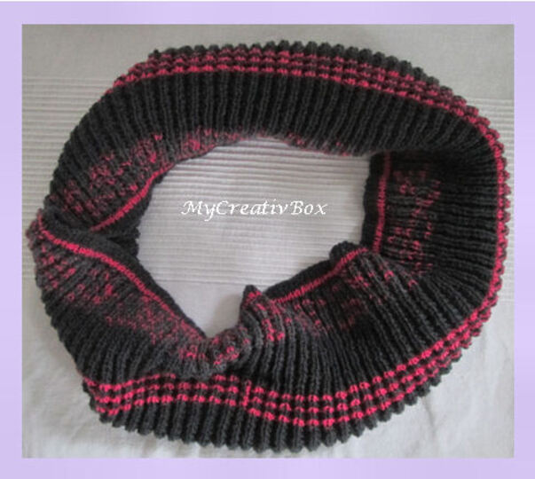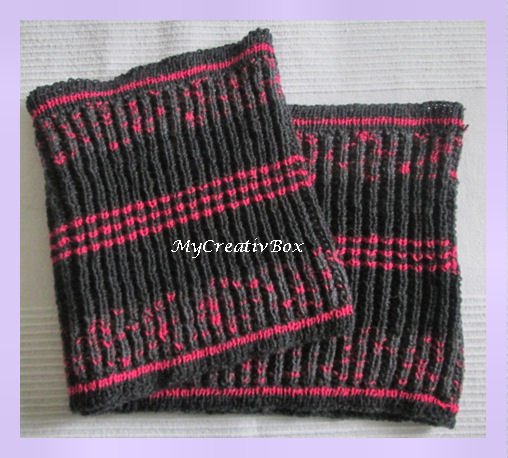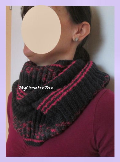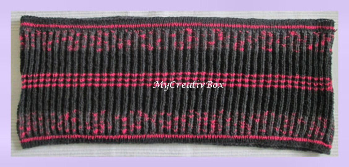 Die Anleitung hat 3 Seiten (inkl. Bilder) und der Mustersatz ist grafisch dargestellt + die Anleitung für die Farbaufteilung für den pinkgrauen Loop.