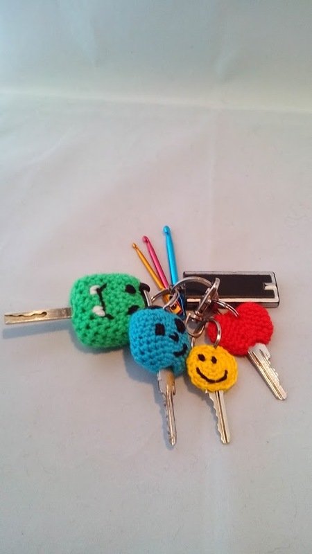 Schnell und einfach läßt sich mit ein paar Wollresten jeder Schlüsselbung zu einem fröhlich bunten Blickfang umgestalten.