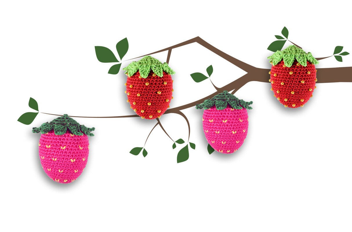 Mit dieser umfangreichen, reichlich bebilderten PDF-Häkelanleitung schaffst Du ganz schnell Ostereier in der Form einer Erdbeere zu häkeln. Die Eier passen sehr gut zum Dekorieren des Hauses, zum Basteln (z.B. Osterkranz) oder Verschenken.