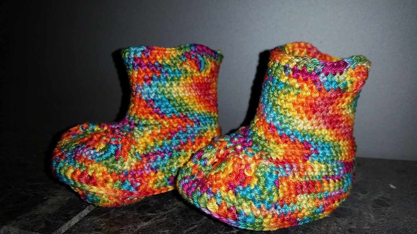 Ihr erhaltet hier eine Häkelanleitung für Schuhe für Babys von 7-9 Monaten.
