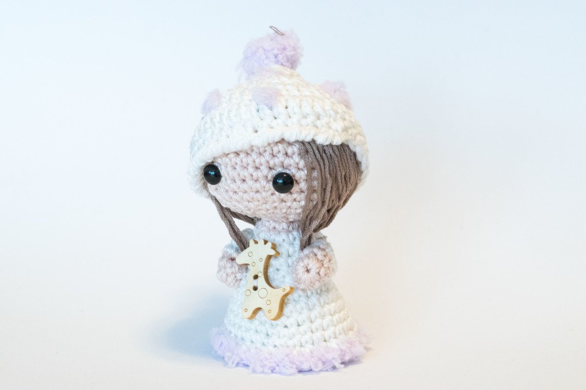 Mit ihrer praktischen Höhe von ca. 9cm (unter Verwendung derselben Wolle und NS 2,5) kann sie auch als Taschenbaumler, als Auto-Innenspiegel-Dekoration oder als Schlüsselanhänger verwendet werden. Auch als Geschenke-Applikation oder als Dekoration in Kinderzimmer-Regalen macht dein gehäkeltes Haekelicious-Püppi eine super Figur.