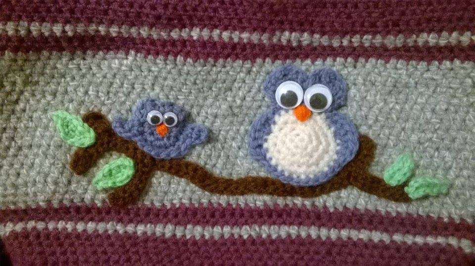 Applikation Eulenkind mit Eulenmami auf einem Ast