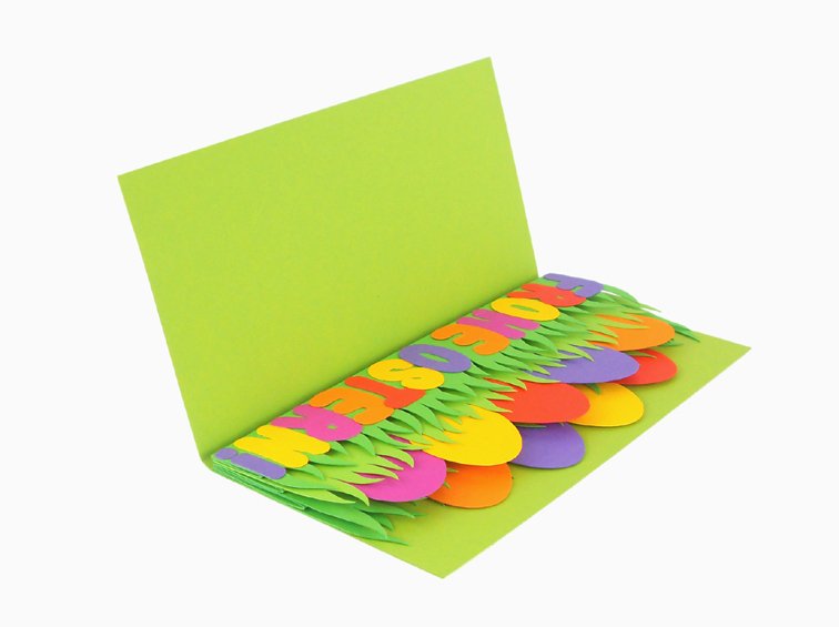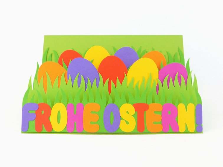 Diese Karte sorgt beim Aufklappen für einen Überraschungseffekt, dient aufgestellt als hübsche Osterdekoration und ist mit etwas Bastelerfahrung sehr leicht nachzuarbeiten.