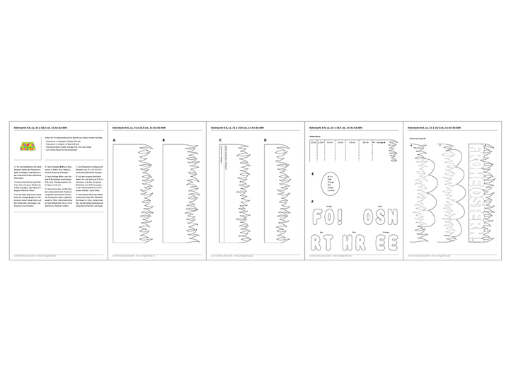 Die PDF-Datei besteht aus einer Anleitungsseite, drei Seiten mit Vorlagen in Originalgröße und einer Seite mit Positionierungshilfen.
