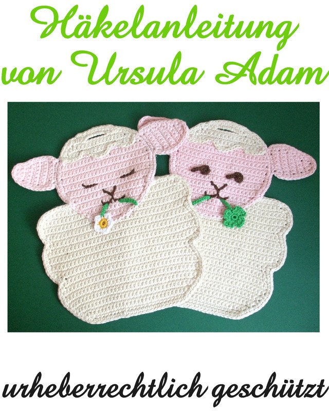 Ein kleines Unschulds - Lamm als Topflappen oder Wanddekoration in der Küche Selbst ausgedacht, aufgeschrieben und mit der Häkelnadel ausprobiert.