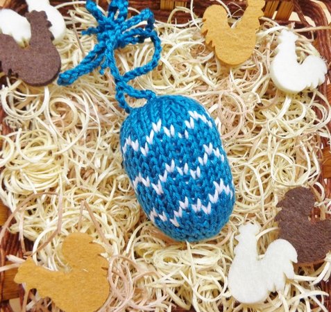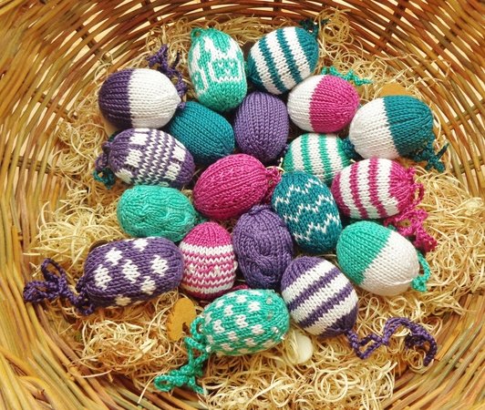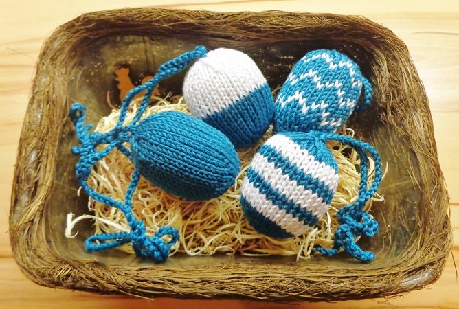 Mit ein bißchen Übung ist ein Deko-Ei in knapp einer Stunde abgestrickt und fertiggestellt!