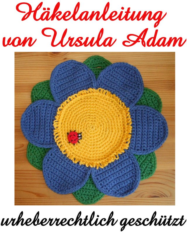 Alle Artikel sind nach § 2 des Gesetzes über Urheberrecht und verwandte Schutzrechte (UrhG) Produkt meiner persönlichen, geistigen Schöpfung. Vervielfältigung ist in keinster Weise von mir gestattet! Sollten Sie allerdings die gehäkelten Topflappen verkaufen wollen, ist dies von mir erlaubt.