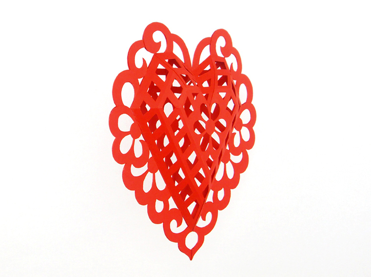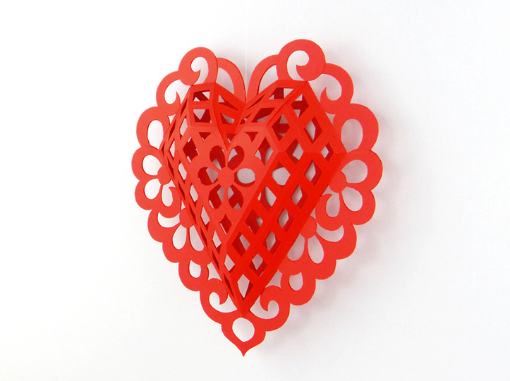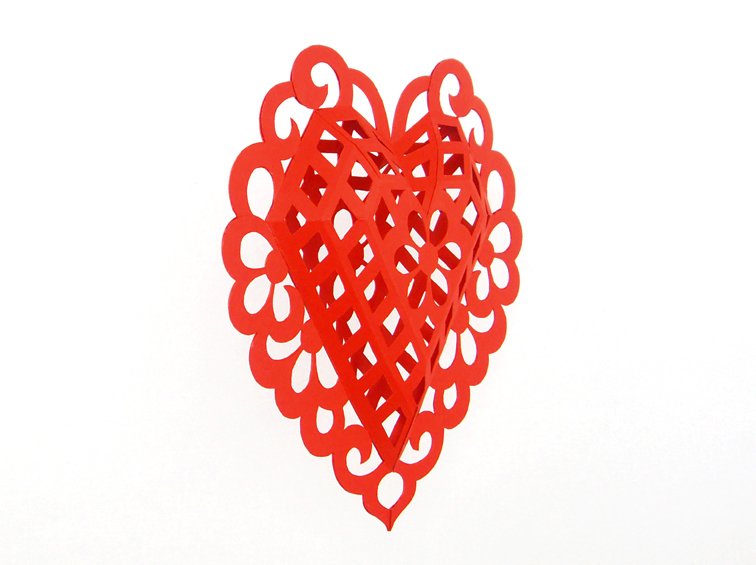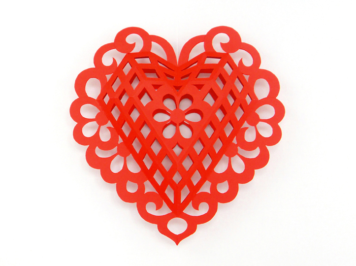 Das Herz ist unkompliziert zu basteln, aber etwas Bastelerfahrung, geübten Umgang mit dem Cutter, geschickte Finger und Ausdauer sollte man dafür unbedingt haben. Die Grundformen werden durch die Vorlagen ausgeschnitten, sodass das Übertragen auf den Fotokarton nicht nötig ist.