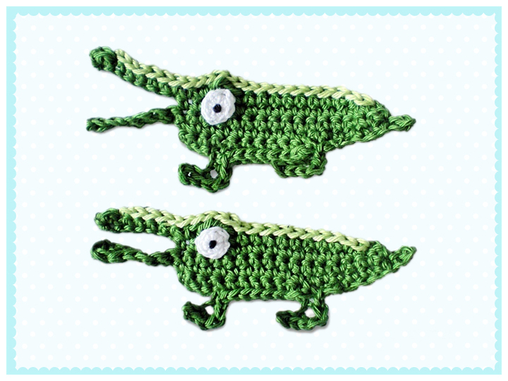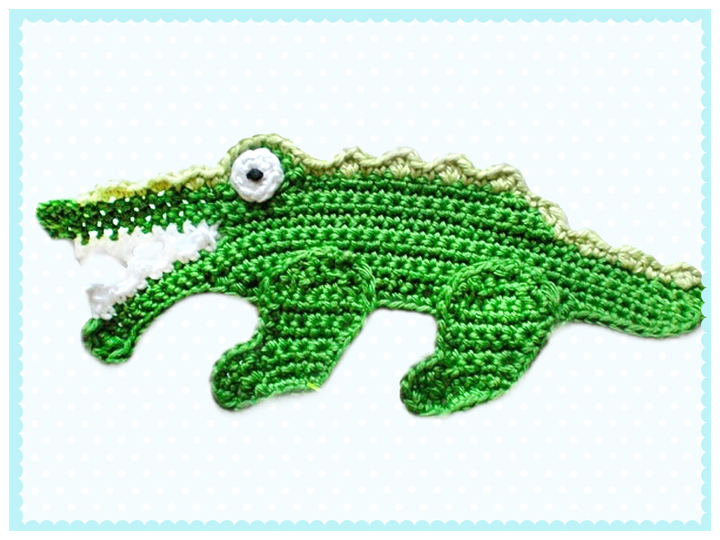 Eine ausführliche Häkelanleitung für ein großes Krokodil, ein kleines Krokodil und einem süßen 3D-Blümchen.