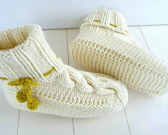 Strickanleitung für wunderschöne Strick - Hausschuhe mit Zopfmuster in den Größen 35/36, 37/38, 39/40 und 41/42