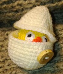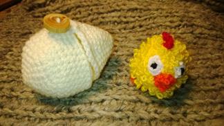 Das Küken und sein Ei werden mit festen Maschen gehäkelt.