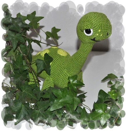 Er ist zwar ein Babydino kommt aber mit einer stattlichen Größe daher. Dino Lino wird unter Verwendung des angegebenen Materials (Catania Baumwollgarn) 24cm lang und 34cm hoch.