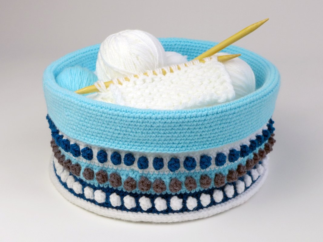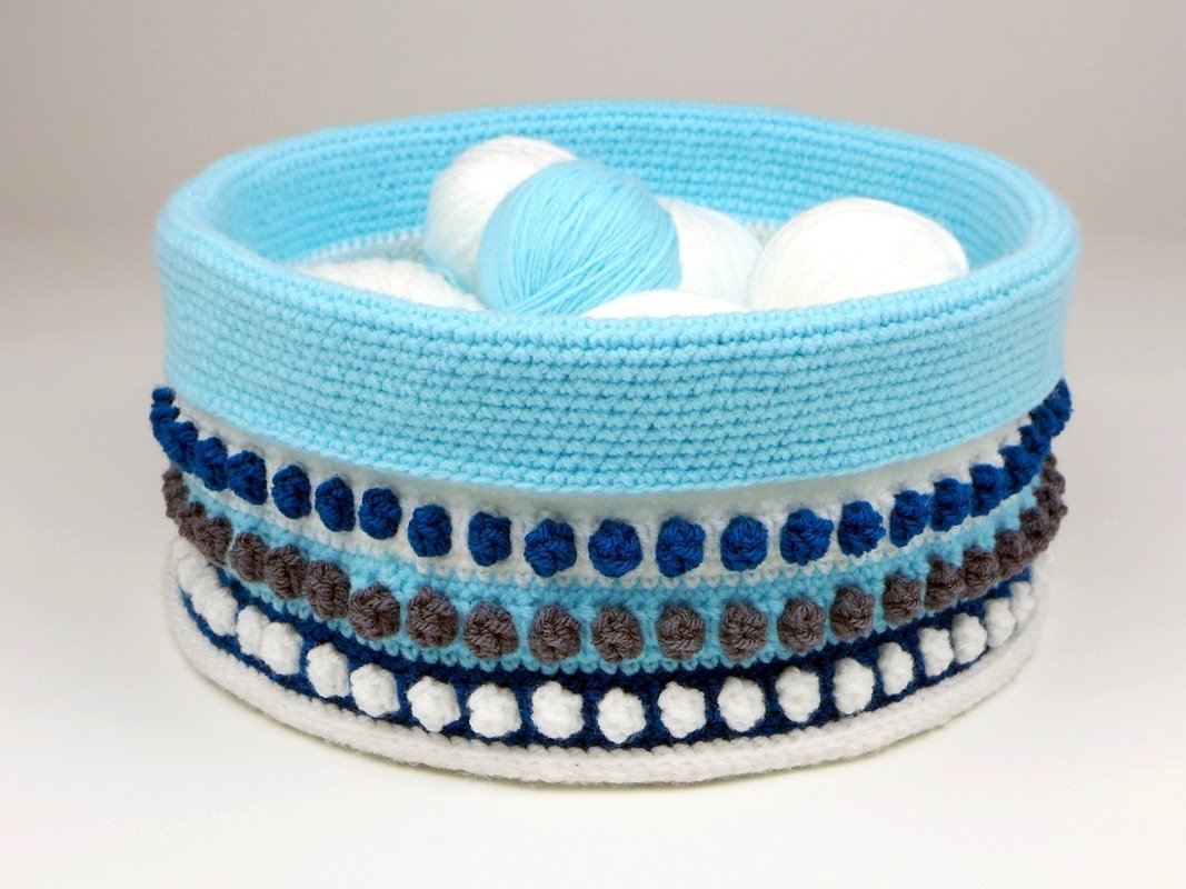 Körbe kann man nie genug haben. Dieser hier ist schön und praktisch zugleich. Ihr könnt allererlei darin aufbewahren und das bunte, fröhliche Design macht schon beim Häkeln gute Laune.