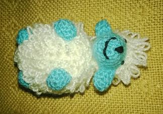Die Schäfchen werden, wenn Sie mittelstarke Wolle (Lisa) verwenden, ca. 7 cm hoch und 9 cm lang.