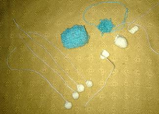 1 kleiner Kieselstein, Durchmesser 1,5 – 2 cm (Er kommt zusammen mit der Füllwatte in den Körper als Beschwerung. Die Schäfchen sind sonst etwas „kopflastig“ und kippen gern nach vorn über.)