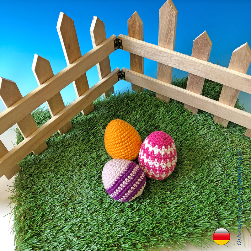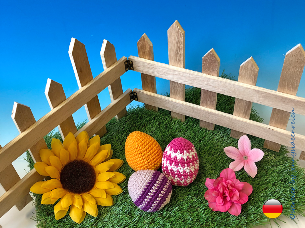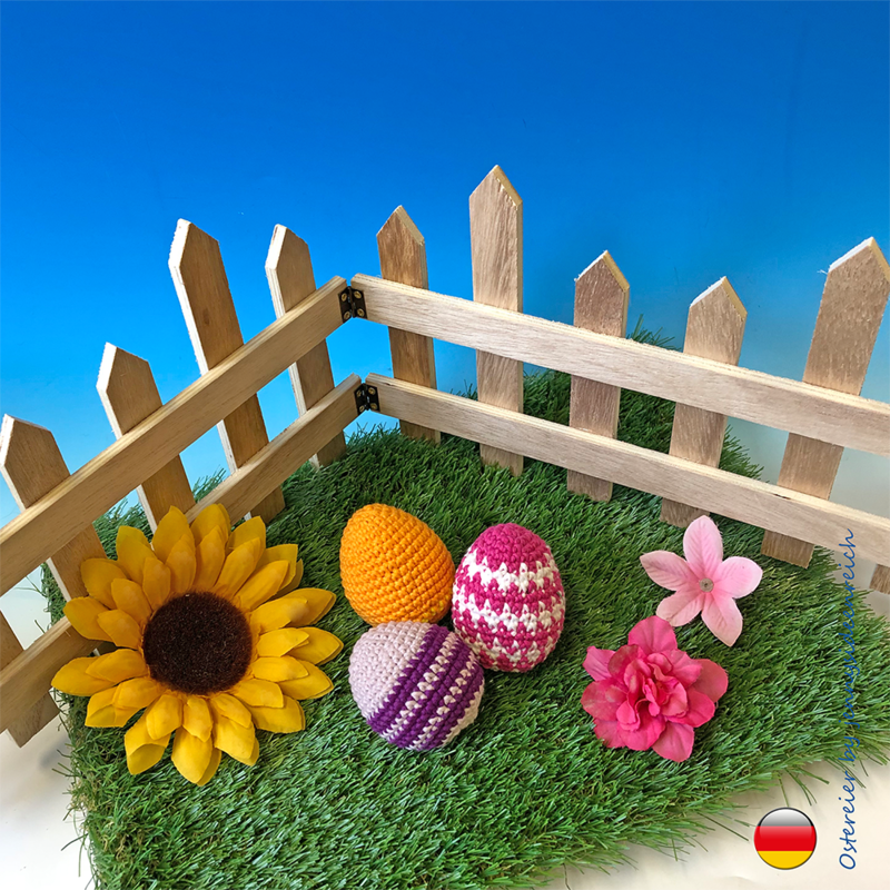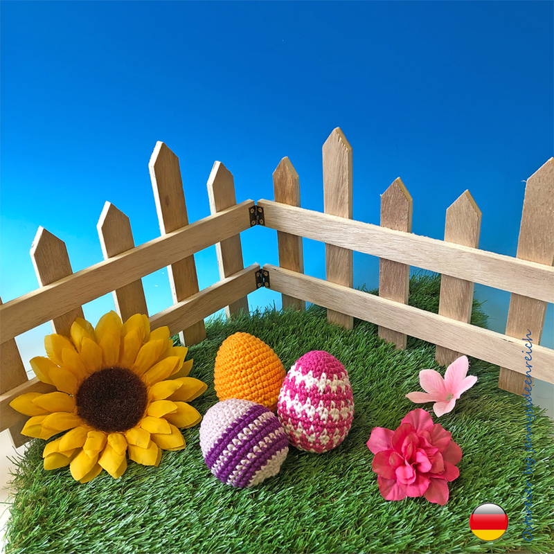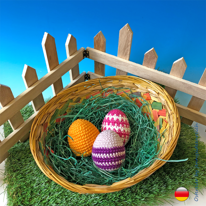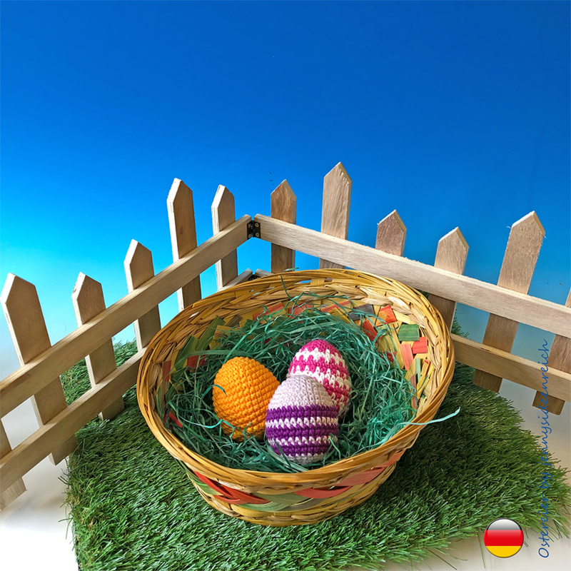 Ihr könnt hier die komplett ausformulierte Häkelanleitung zu den Ostereiern erwerben