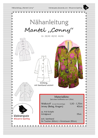 Das Schnittmuster beeinhaltet die Größen 38-40, 40-42, 42-44.