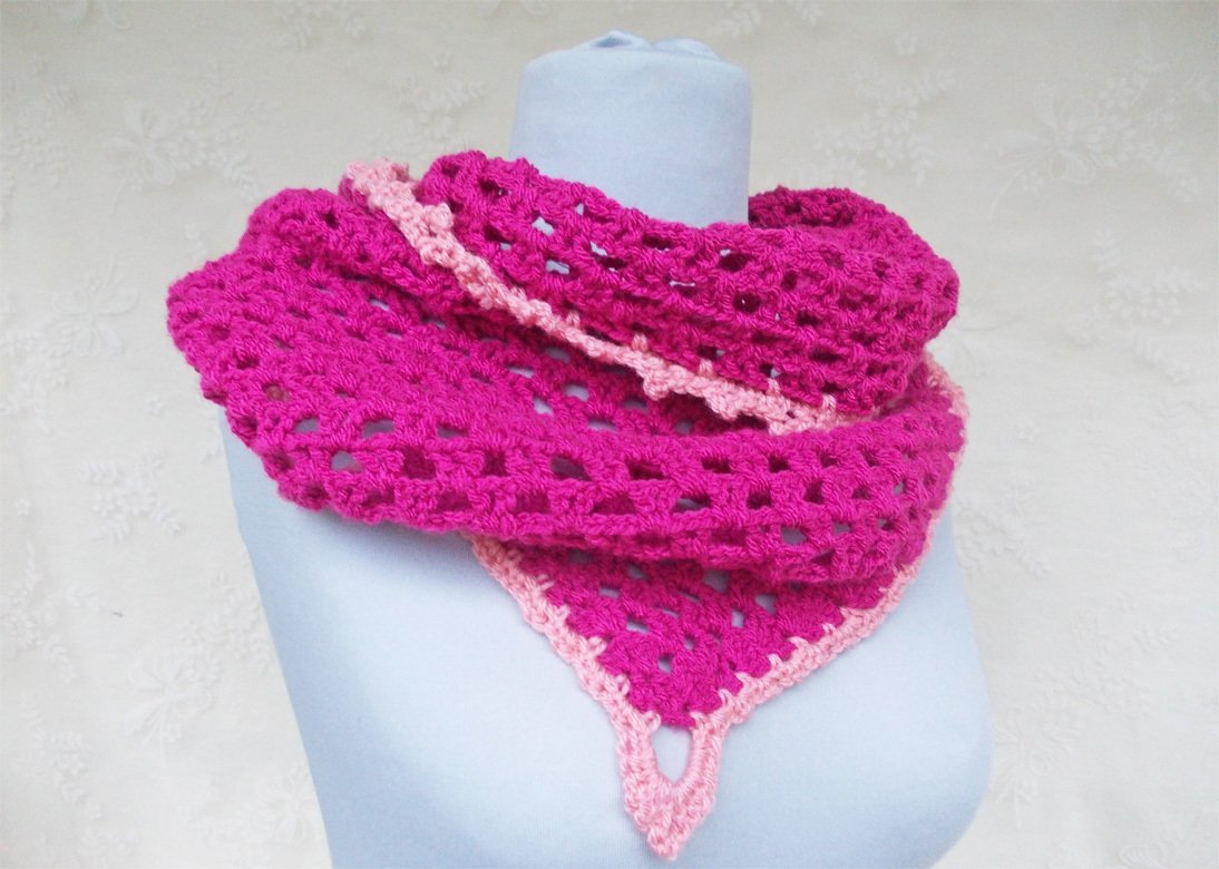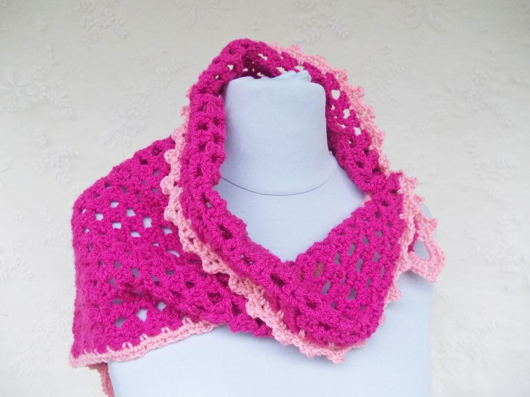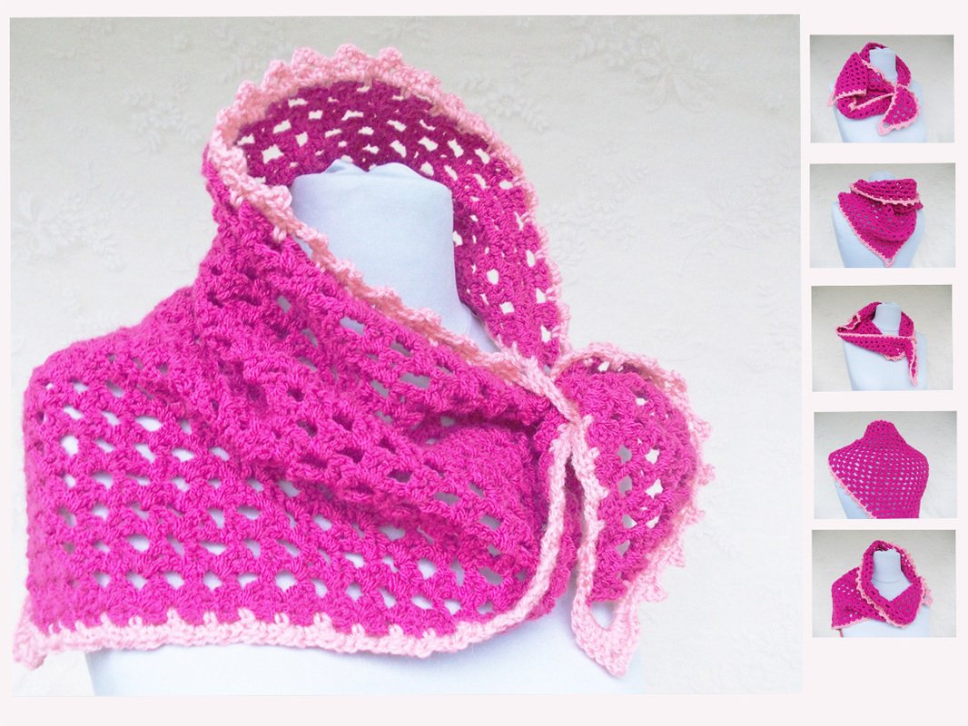 Das Tuch kann klein und größer und riesengroß gehäkelt werden, da die Zunahme so easy ist und es häkelt sich wie von allein. Dann erhält man eine schöne Stola und kann sich diese entspreched drapieren.